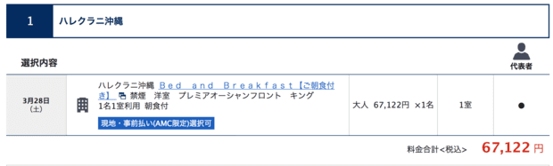 例):沖縄までの往復航空券+ハレクラニ沖縄の宿泊