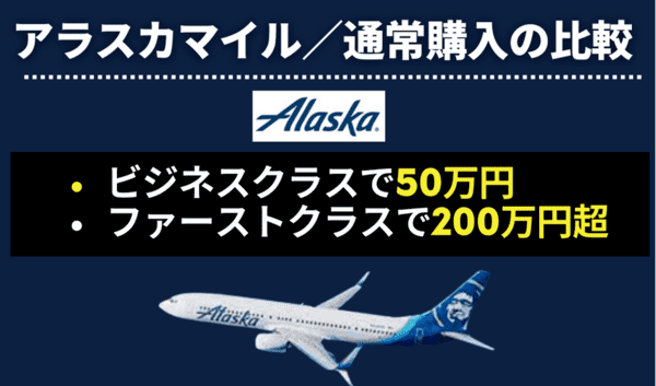 アラスカマイルならより少ないマイルでビジネスクラスやファーストクラスに乗ることができます!