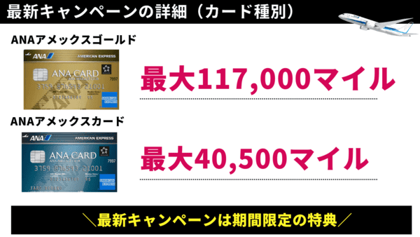 紹介キャンペーンで獲得マイル数に注目!断然ゴールドカードをおすすめします。獲得マイル」ー「年会費」を計算すると、一目瞭然で、年会費を差し引いた残りはANAアメックスゴールドの方がお得です!1マイル=1円と計算していますが、正直これ以上の価値はあります!