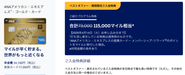 • アメックス側の特典:最大115,000マイル