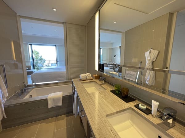 アメニティ(ROJA)やバスソルトも用意しています!チェックインして早速お風呂を貯めてバスソルトを使いましたが、ターンダウンの時に補充してくれていたのはGOODポイントです!
