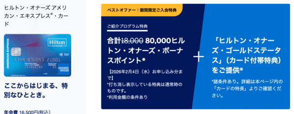 2025年12月最新!ヒルトンアメックスの入会特典が期間限定で特大アップ!