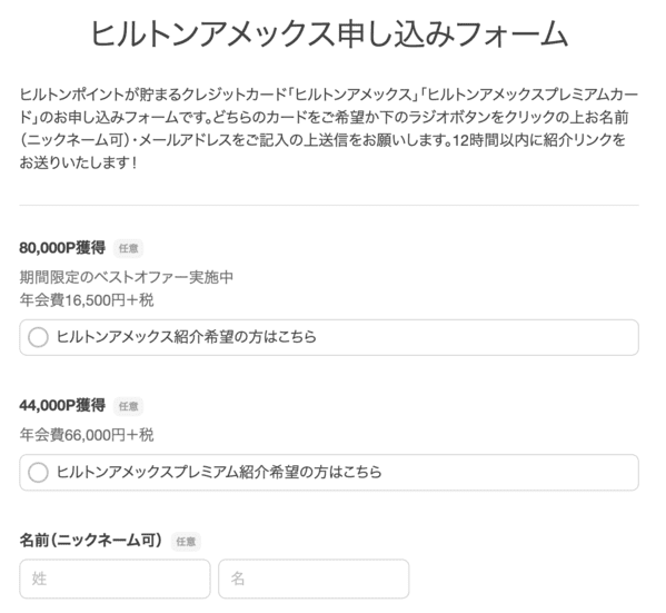 ヒルトンアメックス一般紹介経由のでの入会の場合