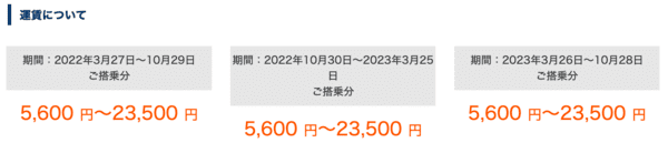 運賃表|販売期間は?シーズン・路線によって料金は異なる