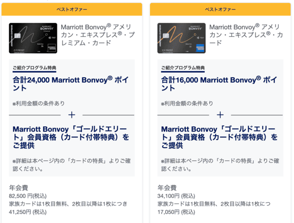- ②マリオットアメックスカードへの紹介経由での入会で最大24,000ポイント獲得