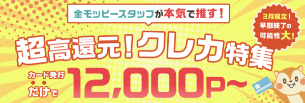 3月限定!モッピーの超高額クレジットカード発行案件一覧|12,000P以上GET